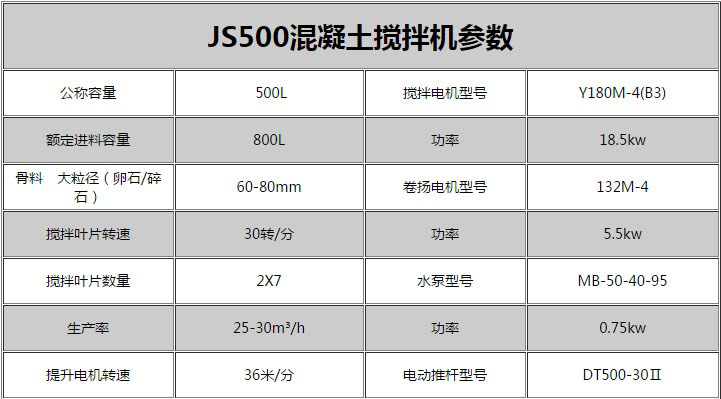 JS500混凝土攪拌機(jī)介紹、用途、配置、參數(shù),優(yōu)點(diǎn):