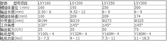 LSY螺旋輸送機(jī)主要技術(shù)參數(shù):